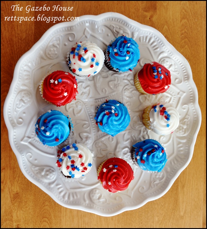 7. Rett, you are definitely ready! Looks like the red, white, and blue will be celebrated in style at The Gazebo House. We'll walk over to the neighborhood parade in the morning. It wouldn't be the 4th of July without the parade. Great idea to use the cup protector for the sparklers. I've not lit a sparkler in years, but found some at the grocery this year. We'll be sparkling on the terrace. '-)