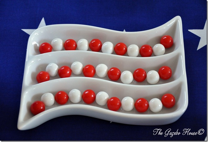 You are so clever! I love the gumballs looking like the flag. I am in search of chargers but think I must wait until the holidays. Those tumblers are just wonderful! Well, I could go on and on but I will just finish with - I love this table!
