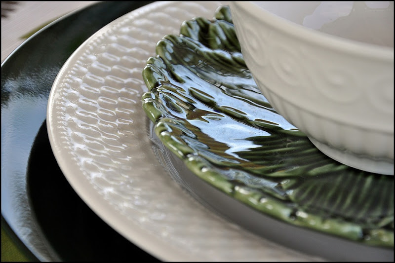 My GREEN leaf-shaped under plate is "Olfaire", made in Portugal.