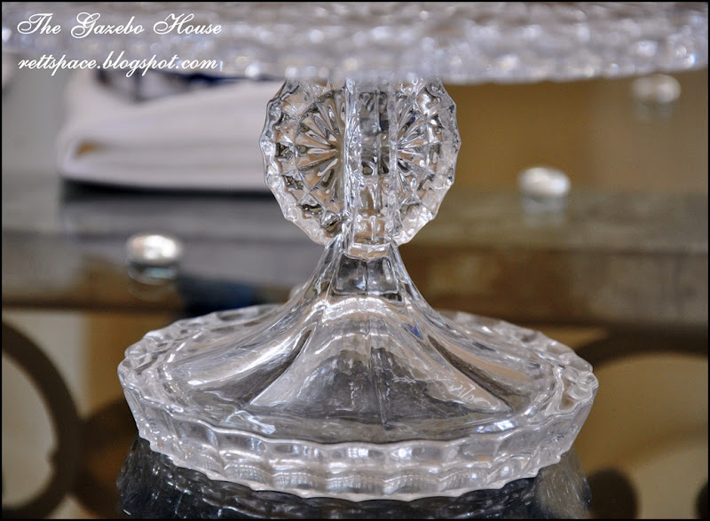 I set the cover to the cake plate aside & used this round dome to create a "Snow Globe" effect for my centerpiece.